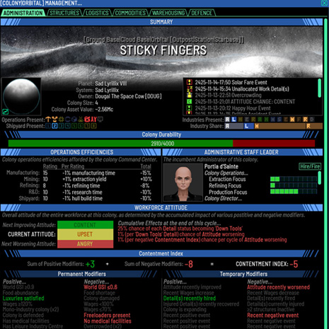 Found and manage colonies to establish your presence across the galaxy. Develop colonies through research to unlock technologies, establish manufacturing facilities to produce valuable items, and engage in resource extraction through mining operations. Colonies aren't just bases – they're the foundation of your empire in the stars.